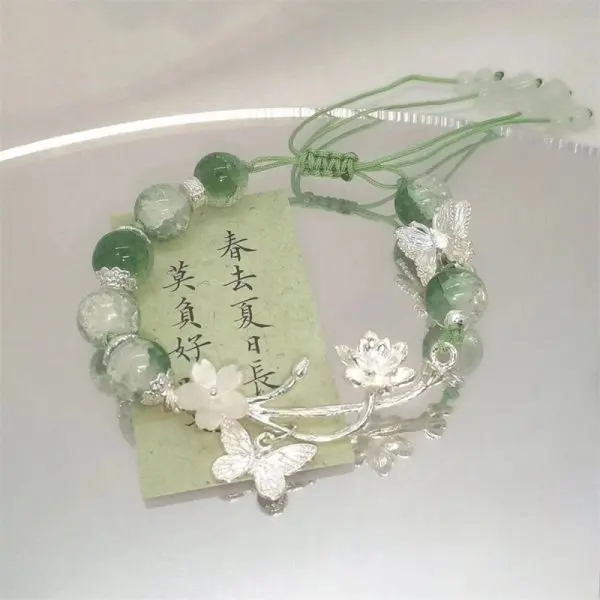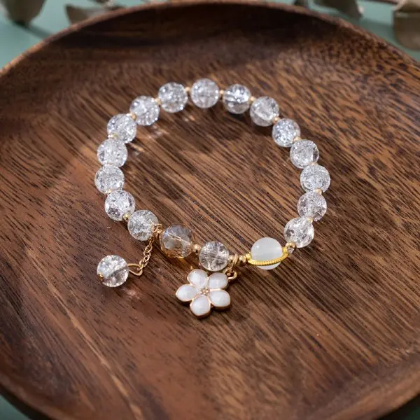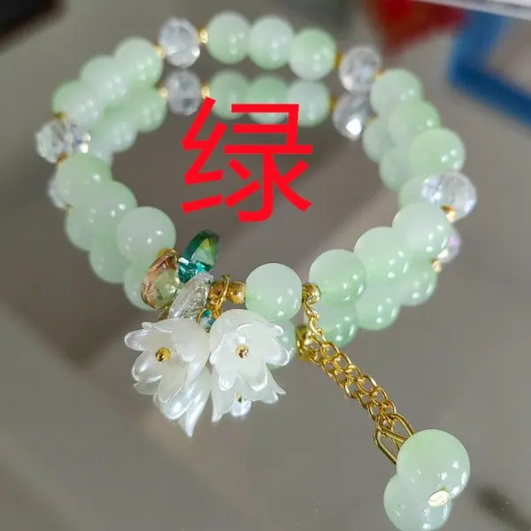 Fashion Natural Stone Bracelet Elegant Lily of the Valley Flower Pendant Elastic Beaded Bracelets for Women Party Jewelry Gift