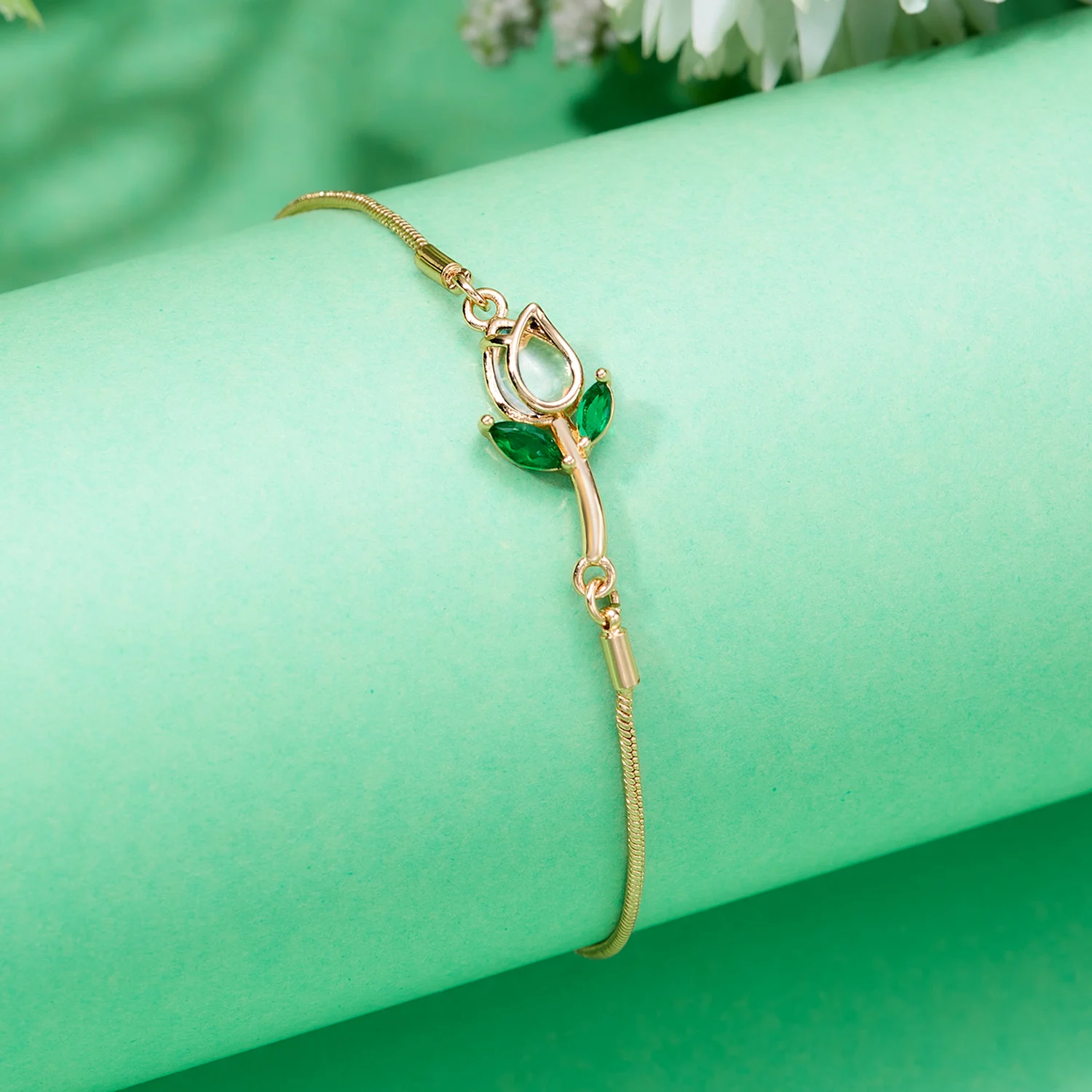 Light Luxury Zircon Tulip Flower Clavicle Chain Necklace for Women Elegant Brass Pendant Bracelet Fashion Party Jewelry Gift