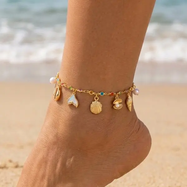 New Bohemia Starfish Conch Shell Beads Anklet For Women Double Heart Beaded Leg Chain Summer Beach Party Barefoot Sandal Jewelry