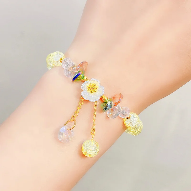 Elegant Crystal Flowers Bracelet For Women Y2K Sweet Girls Moon Cherry Blossom Bow Zircon Bracelets Luxury Designer Jewelry Gift