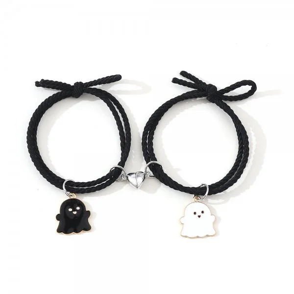 Halloween 2Pcs/Set Ghost Braided Bracelet For Lovers Long Distance Heart Magnet Couple Bracelets Friendship Fashion Jewelry Gift