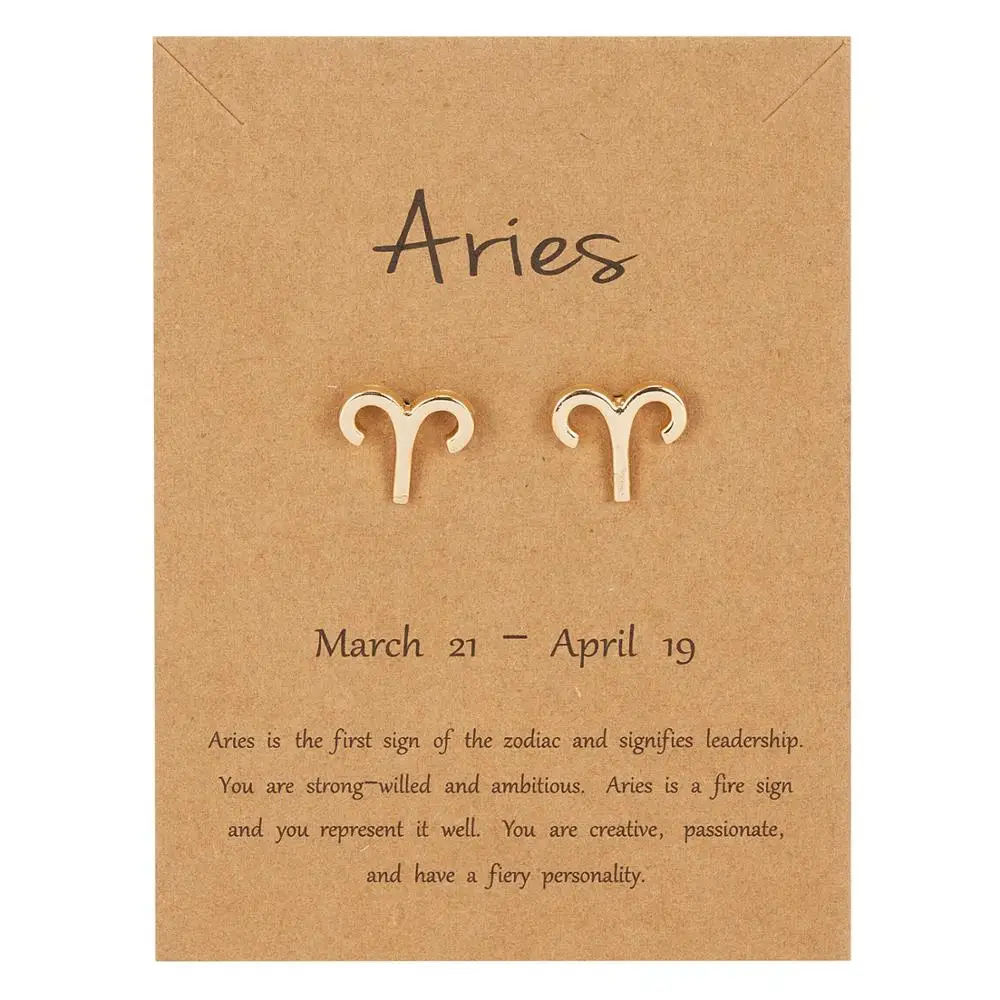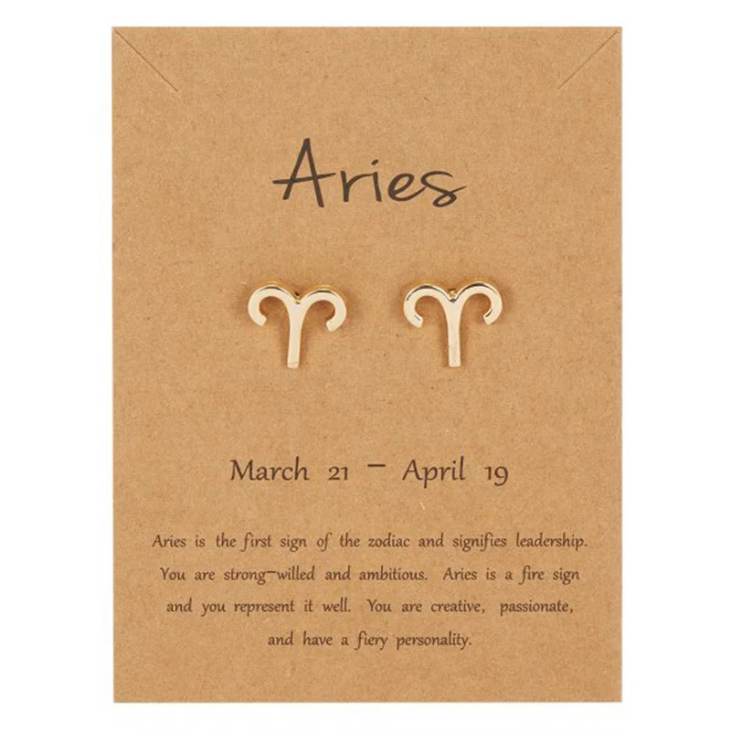 Minimalist Symbol 12 Constellation Stud Earrings for Women Gold Color Zodiac Sign Earring With Cardboard Jewelry Birthday Gifts