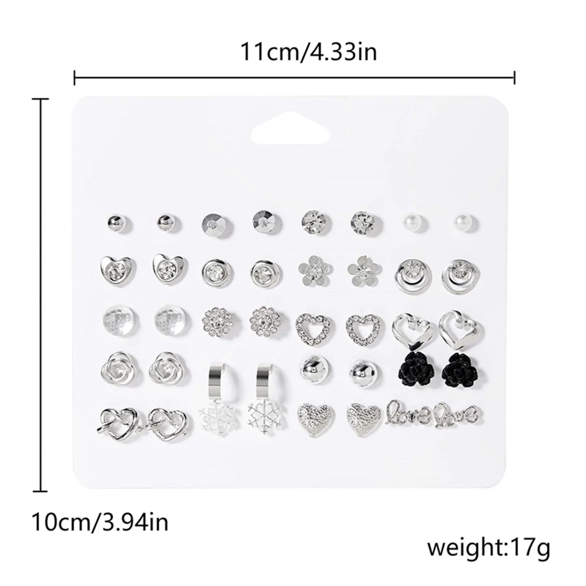 12 Pair Combination Earrings Set for Women Fashion Gold Color Silver Color Heart Four Leaves Rhinestone Earring Wedding Jewelry