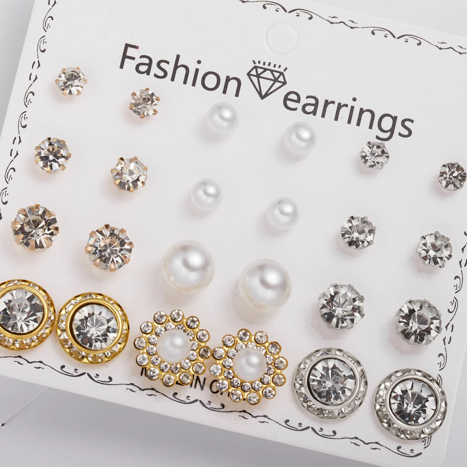 Delicate Trendy Pearl Crystal Metal Stud Earring Set For Women Girls 2021 New Design Earring Jewelry Daily Wearing