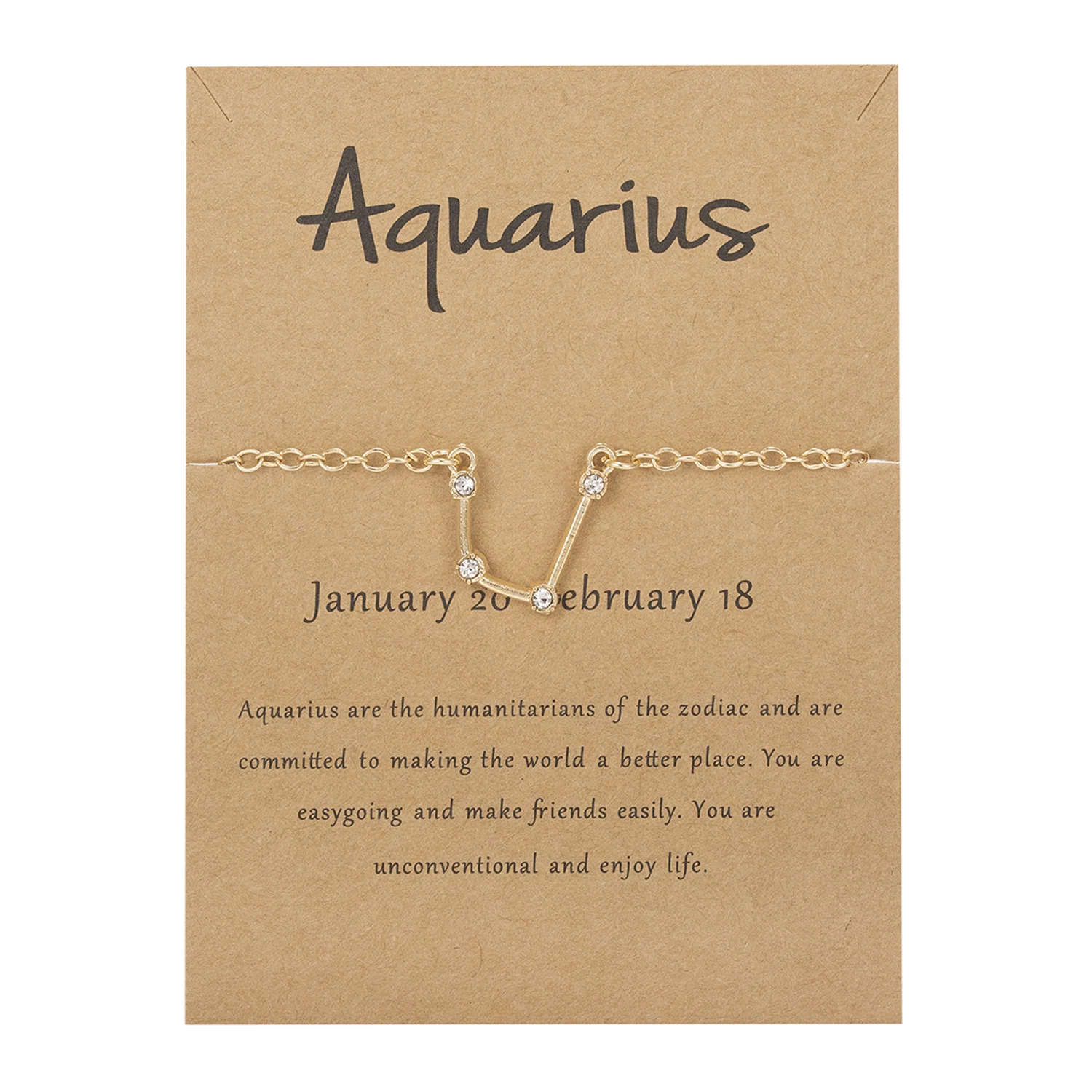 12 Constellation Bracelet Crystal Charm Chain Bracelets for Women Zodiac Sign Libra Aries Wish Card Birthday Jewelry Gift