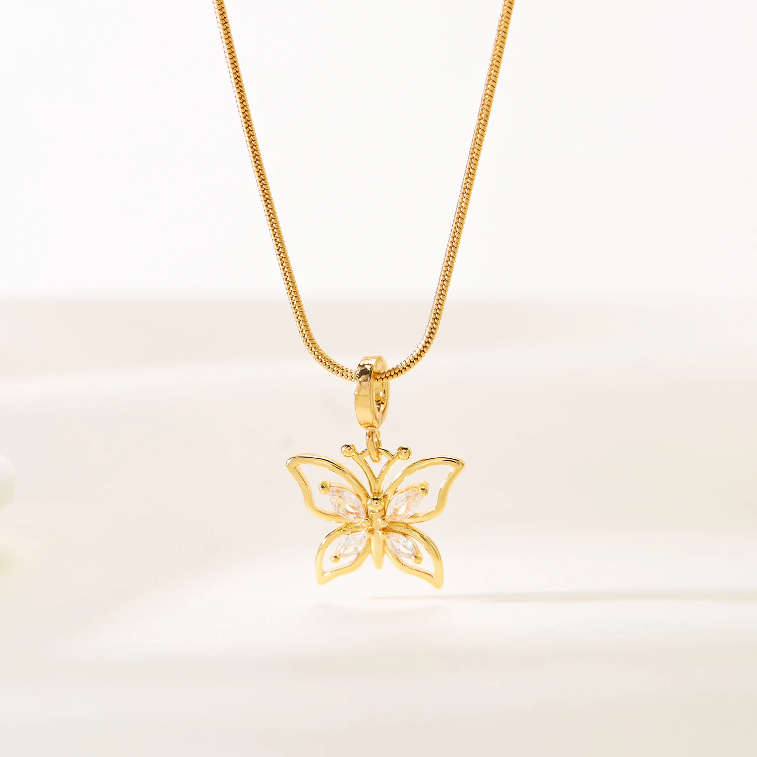 Exquisite Butterfly Zircon Pendant Necklace for Women Gold Color Stainless Steel Clavicle Chain Choker Wedding Party Jewelry
