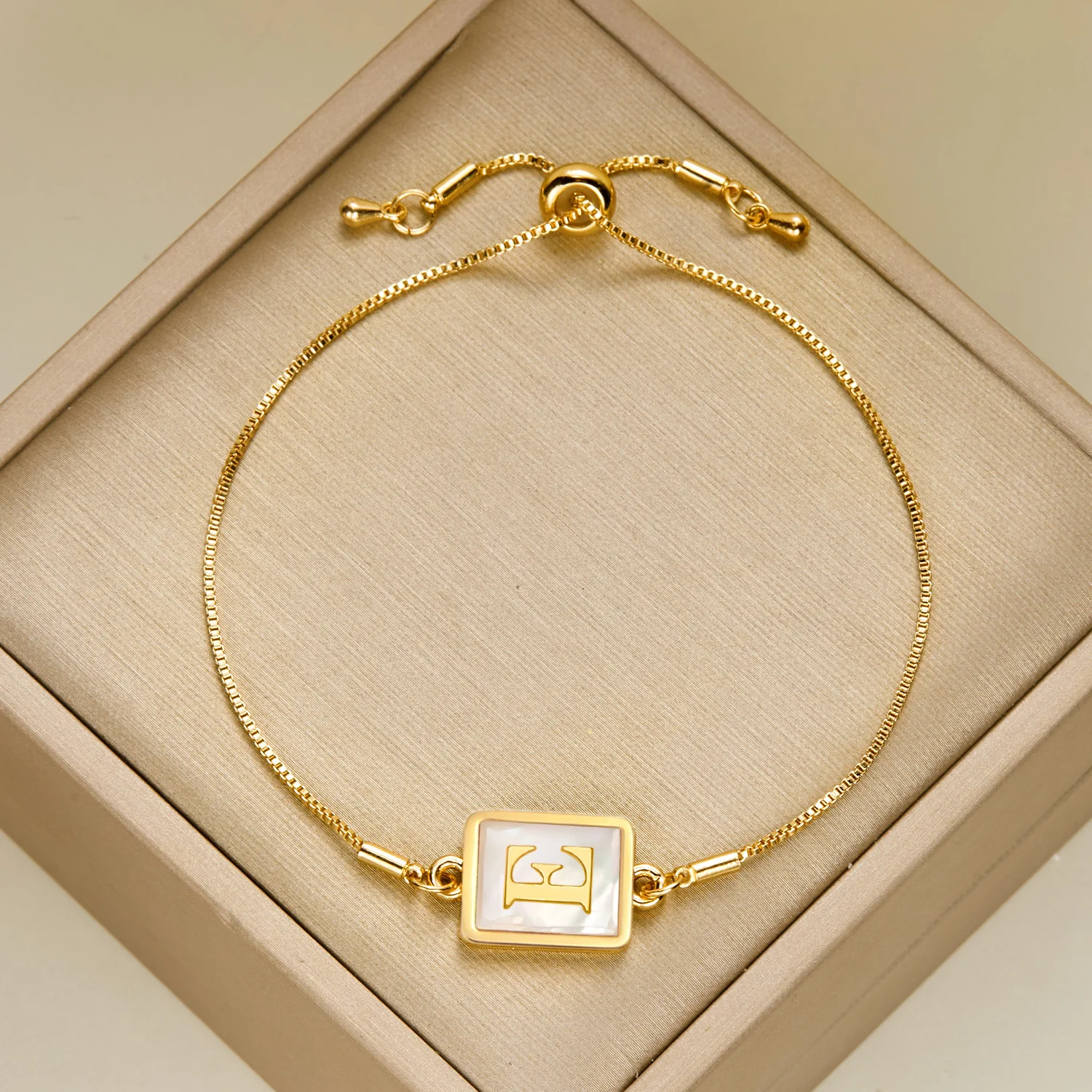 26 English Initial Letter Luminous Imitation Shell Bracelet For Women A-Z Alphabet Square Glow In Dark Bracelet Birthday Jewelry