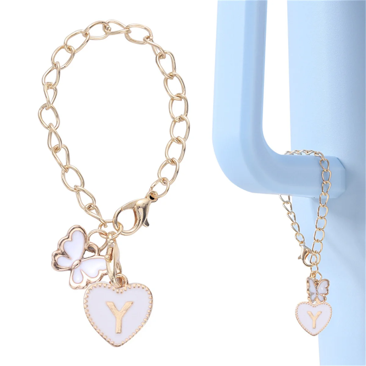 26 Initial Letter Pendant Key Chain For Women Minimalist White Enamel Love Heart Butterfly A-Z Alphabet Keyring Birthday Jewelry