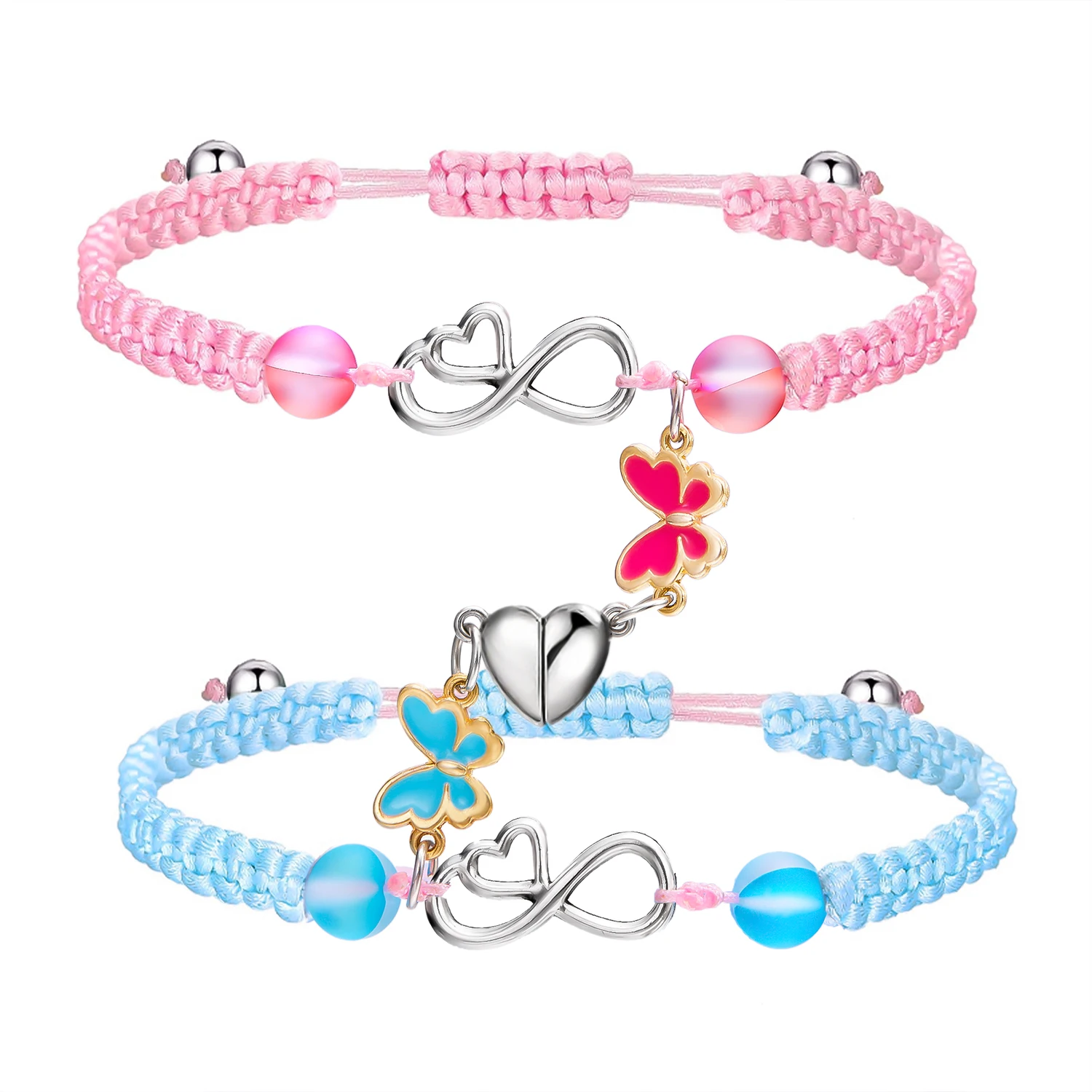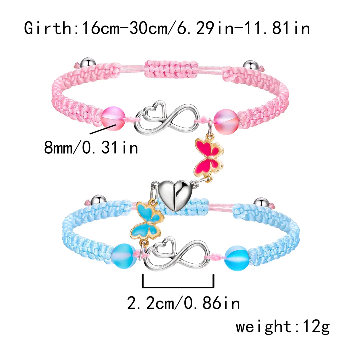 2 Pcs Romantic Infinity Magnetic Heart Couple Bracelets for Women Handmade Blue Pink Rope Butterfly Bracelet Friendship Jewelry
