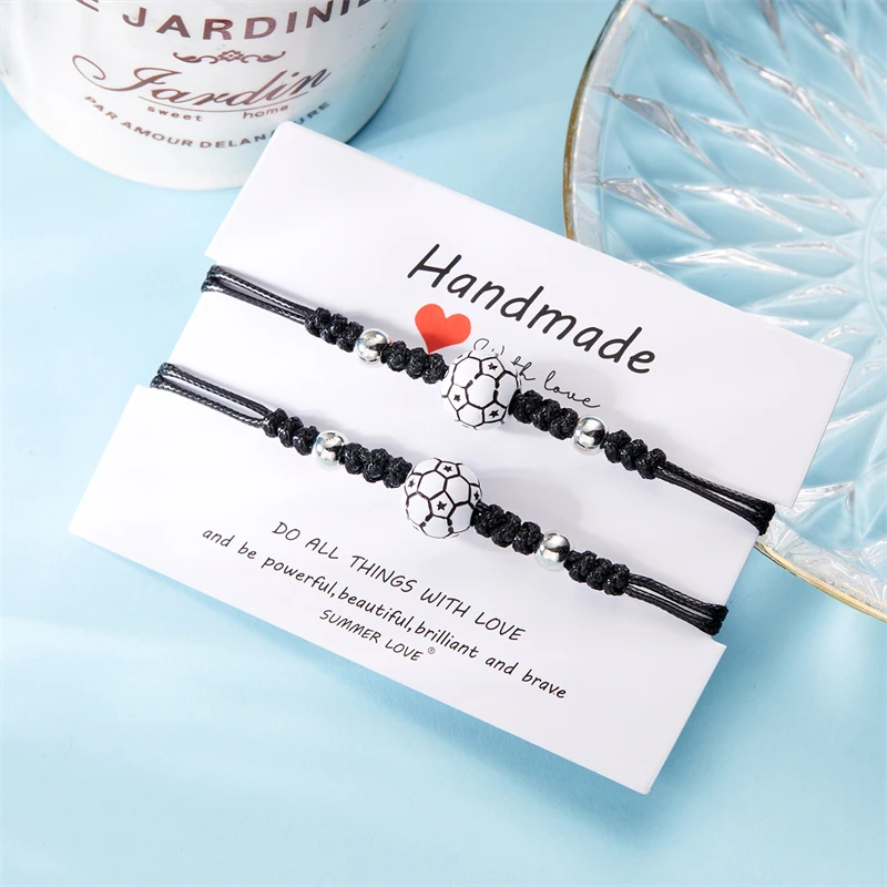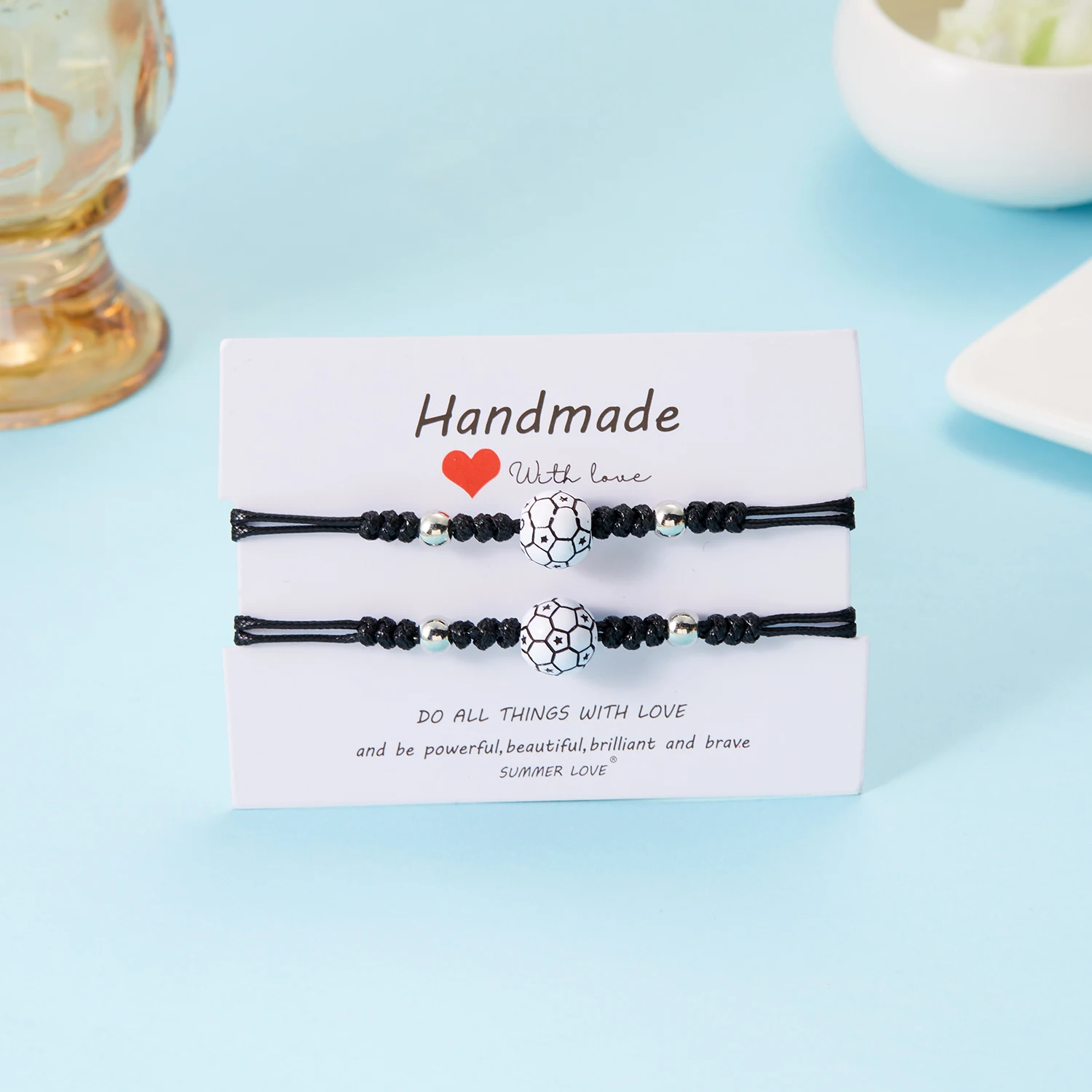 2Pcs/Set Fashion Basketball Football Bracelet for Women Men Charm Handmade Braided Rope Bracelet Jewelry Friendship Couple Gifts