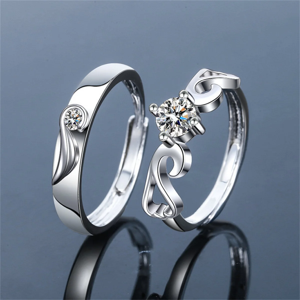 2Pcs Love Heart Heartbeat Couple Open Rings For Women Men Lover Black Silver Color Engagement Wedding Rings Valentines Day Gifts