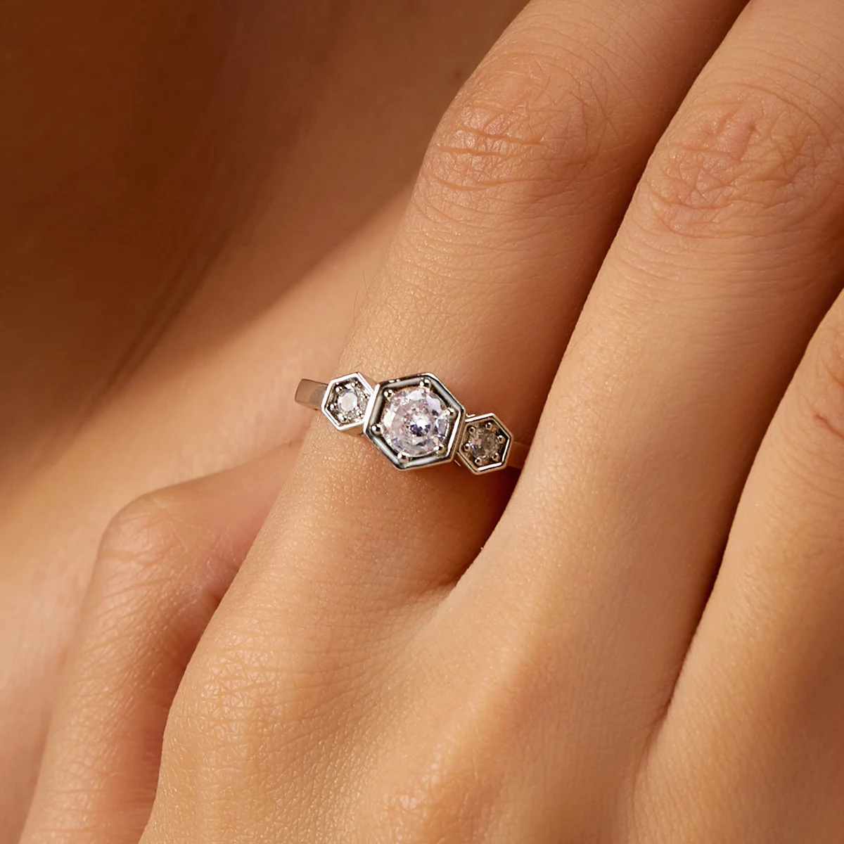 2Psc/set Honeycomb Geometric Couple Rings for Women Men Hexagonal Zircon Finger Ring Party Wedding Jewelry Birthday Gift Fashion