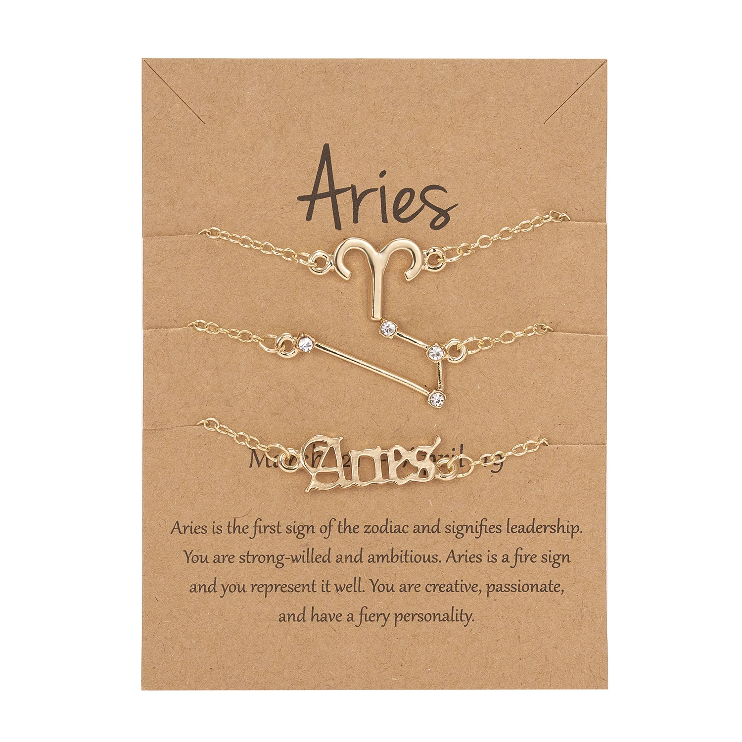 3pcs/set 12 Zodiac Sign Constellation Letter Charm Bracelet Women Fashion Multilayer Horoscope Astrology Bracelet Birthday Gifts