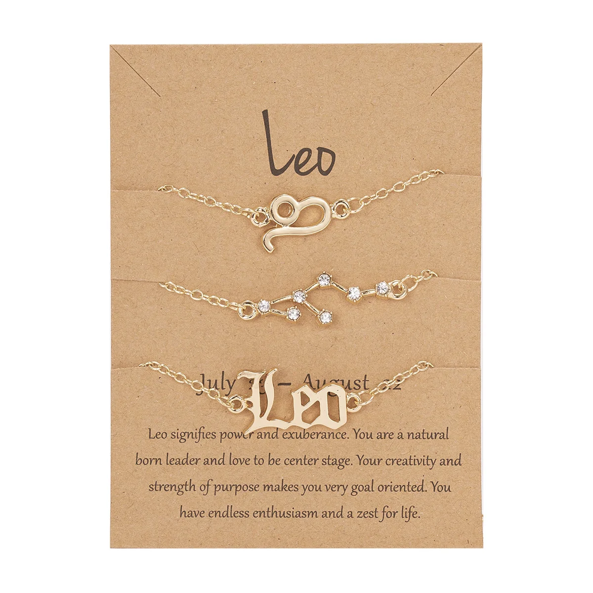 3pcs/set 12 Zodiac Sign Constellation Letter Charm Bracelet Women Fashion Multilayer Horoscope Astrology Bracelet Birthday Gifts
