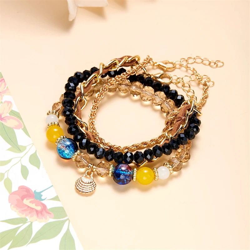 Bohemian Style Multi-layered Bracelet Gold Plated Shell Crystal Glass Beaded Bracelet for Women Party Jewelry Accessories 3.30 USD