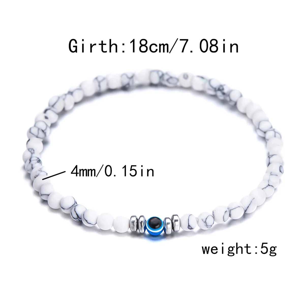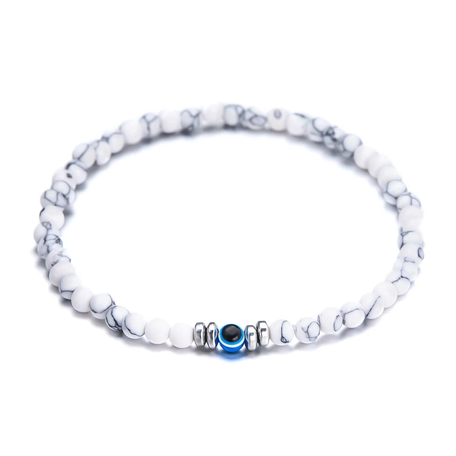 4mm Natural Stone Beads Bracelet for Men Fashion Lucky Evil Eye Smooth Round Beaded Couple Wristband Bangle Jewelry Gifts
