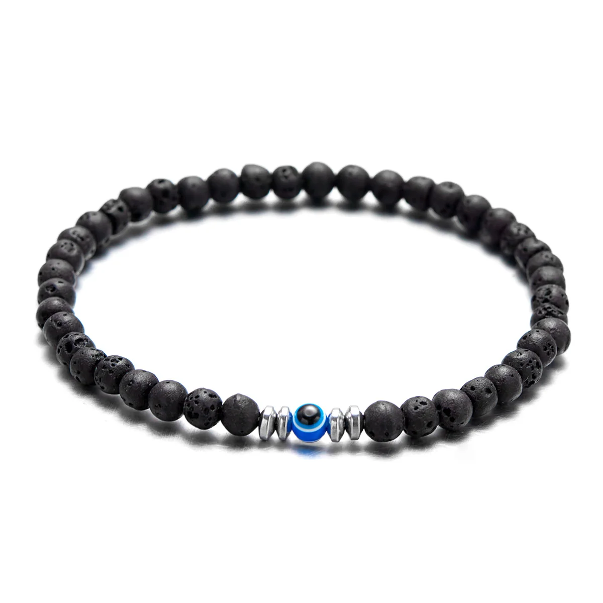 4mm Natural Stone Beads Bracelet for Men Fashion Lucky Evil Eye Smooth Round Beaded Couple Wristband Bangle Jewelry Gifts