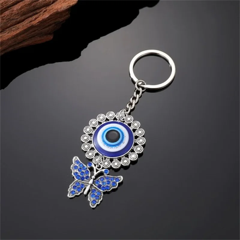 Boho Evil Eye Beads Keychain Pendant Car Key Keyring Silver Color Blue Owl Elephant Animasl Women Men Bag Gift