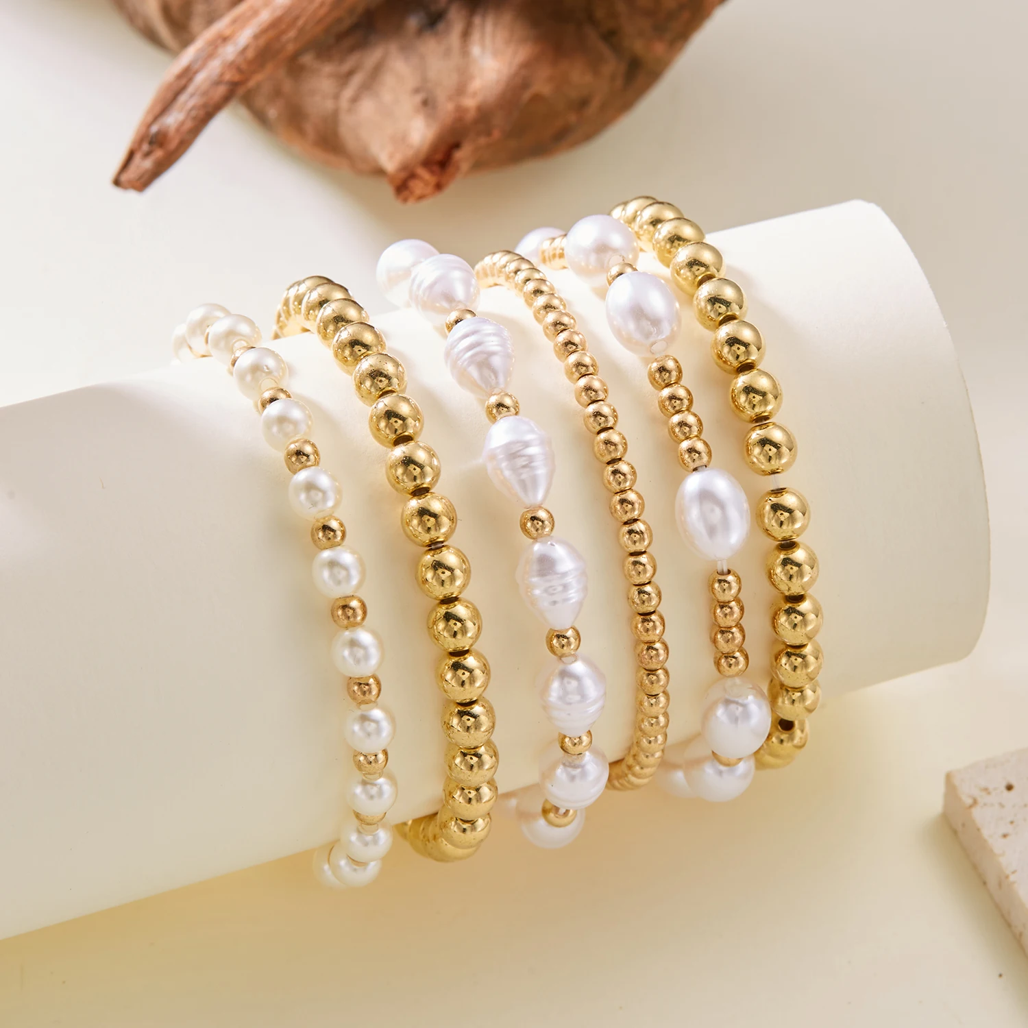 Vintage Heart Imitation Pearl Bracelet for Women Girls Fashion Handmade Elastic Beaded Bracelets Elegant Wedding Party Jewelry