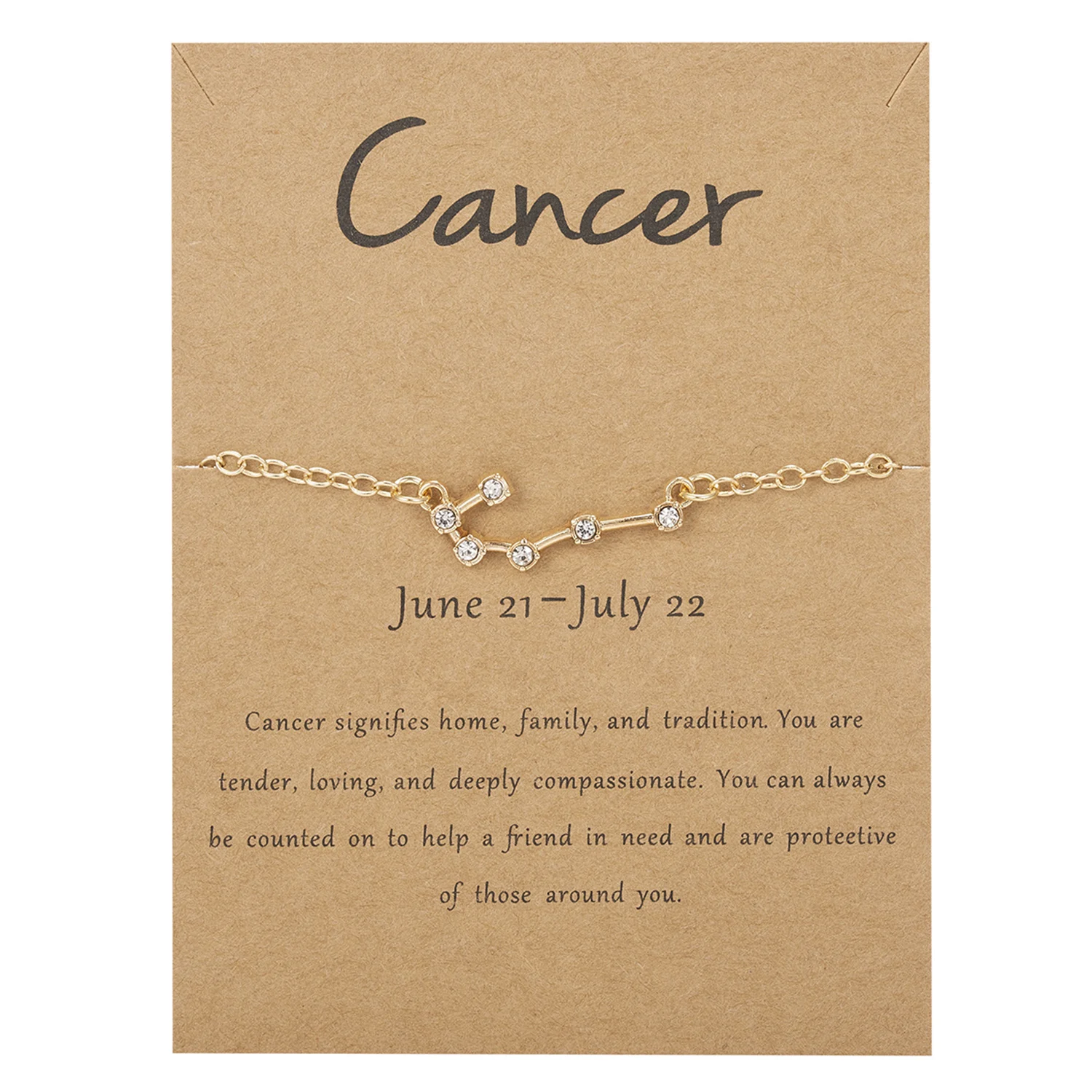 12 Constellation Bracelet Crystal Charm Chain Bracelets for Women Zodiac Sign Libra Aries Wish Card Birthday Jewelry Gift