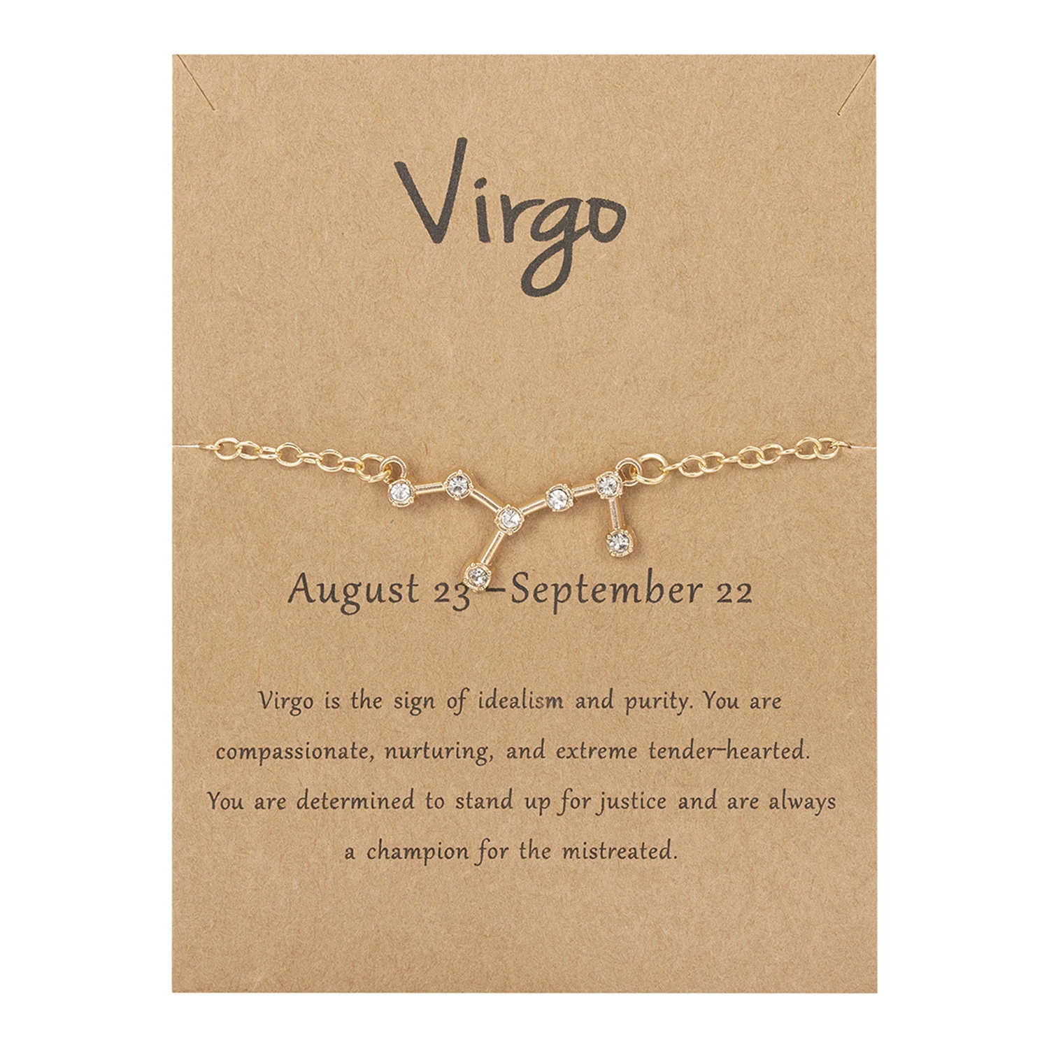 12 Constellation Bracelet Crystal Charm Chain Bracelets for Women Zodiac Sign Libra Aries Wish Card Birthday Jewelry Gift