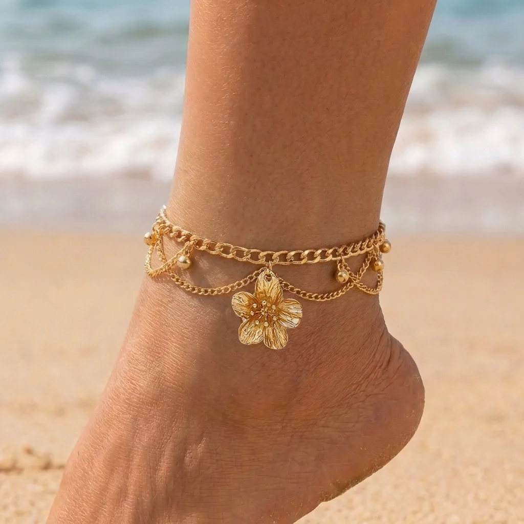 Charm Red Cherry Anklets for Women Vintage Boho Zircon Love Heart Flower Foot Leg Ankle Chain Girls Beach Party Jewelry Gifts