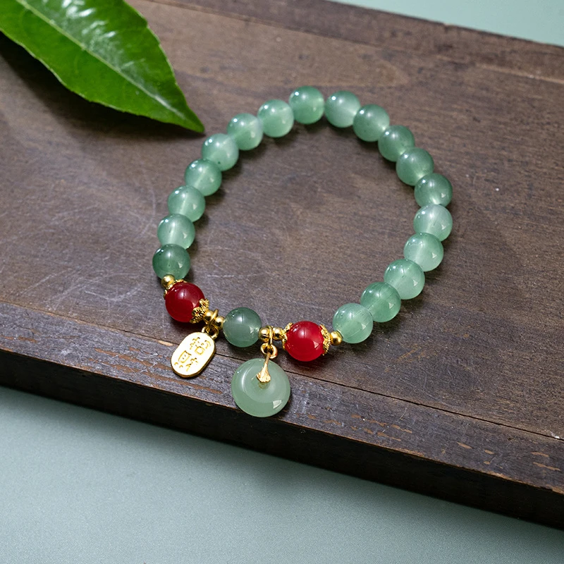 Handmade Good Luck Wealth Elastic Beaded Bracelet Imitation Jade Ping An Buckle Lucky Amulet Prayer Bracelets For Women Men Gift