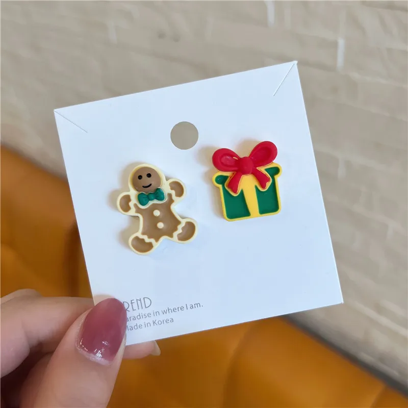 Christmas Earrings For Women 2023 Trending Small Cute Elk Bowknot Ear Studs Santa Claus Hat Asymmetric Earrings New Year Jewelry