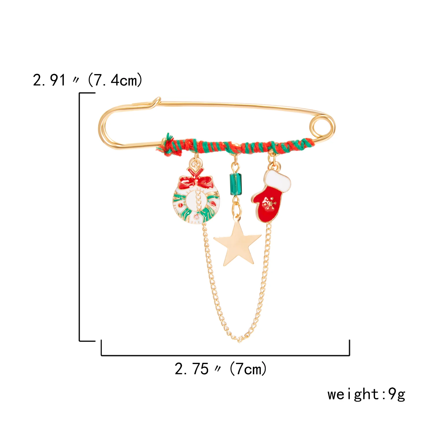 Christmas Long Pins Star Tassel Chain Brooch Xmas Tree Glove Wreath Gift Box Elk Santa Claus Brooches for Women Kid Coat Jewelry