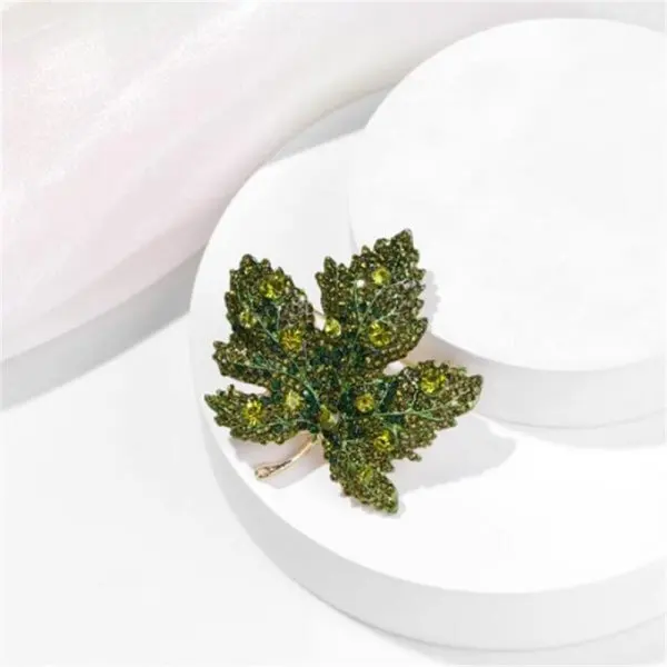 Exquisite Elegant Yellow Green Rhinestone Maple Leaves Brooches Pins For Women Luxury Rhinestone Leaf Plant Badge Party Jewelry