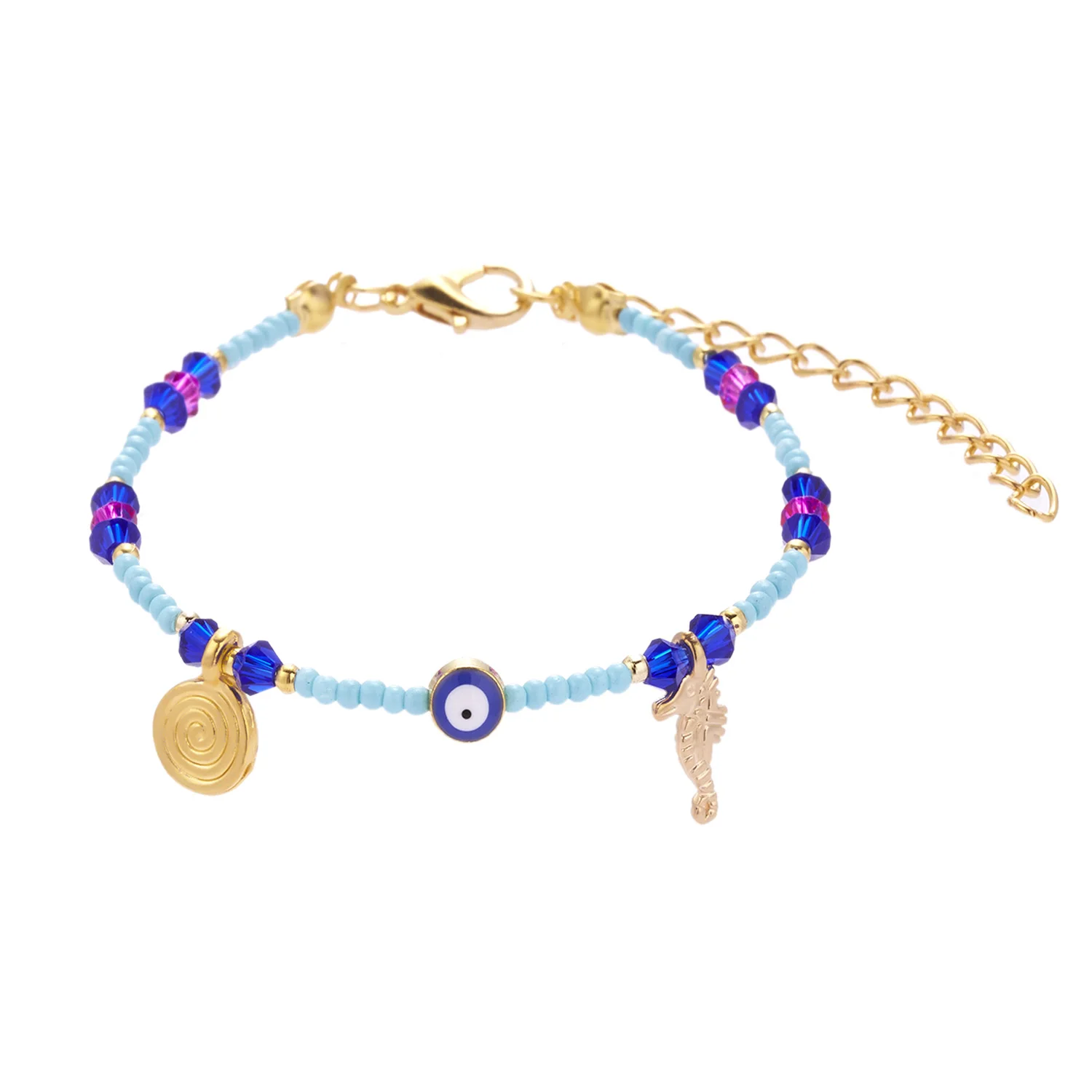 Classic Turkish Blue Eye Bracelet for Women Fashion Colorful Rice Beads Handmade Lucky Bracelet Couple Adjustable Jewelry Gifts