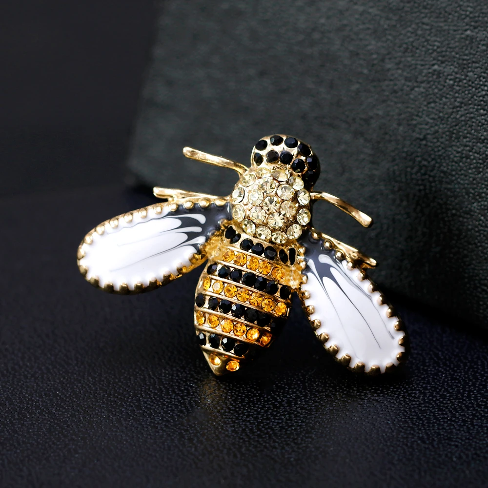 Vintage Rhinestone Bee Brooch for Women Men Cute Little Bee Insect Metal Lapel Pins Coat Suit Corsage Party Jewelry Accessories