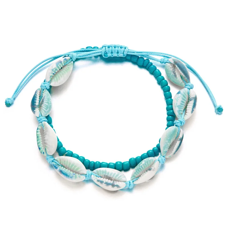 Bohemian Rice Beads Shell Pendant Anklet Set Fashion Summer Beach Sea Shell Double-layer Bracelets Anklet Jewelry Accessories