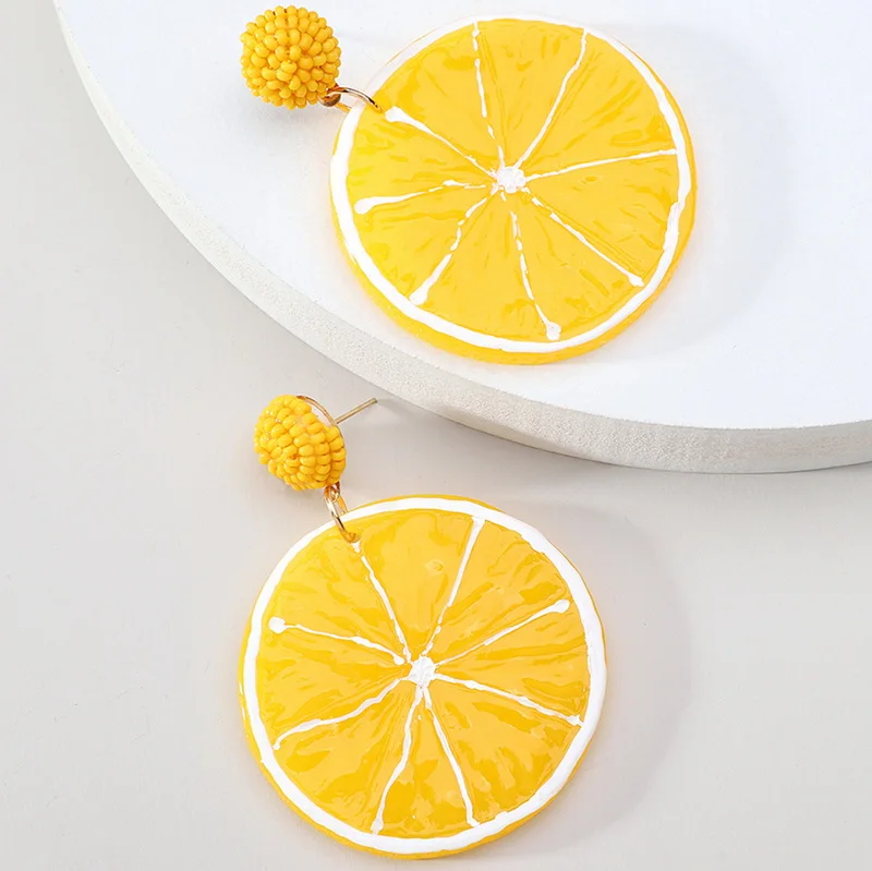 Fashion Acrylic Fruit Lemon Strawberry Dangle Earrings For Women Charm Food Simulated Pitaya Orange Earrings Jewelry Accessories