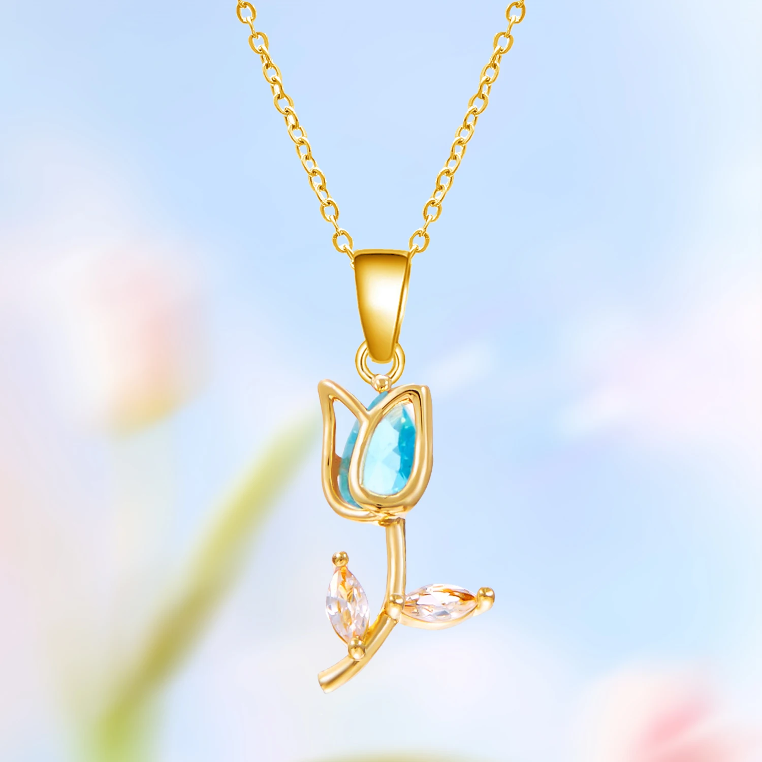 Light Luxury Zircon Tulip Flower Pendant Necklace for Women Elegant Stainless Steel Clavicle Chain Fashion Party Jewelry Gift
