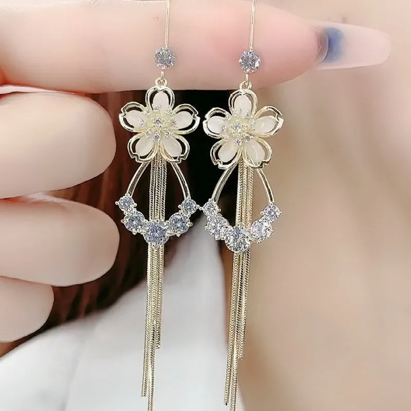 Korean Vintage Opal Tulips Water Drop Shape Earrings Micro Inlaid Zircon Gold Color Earrings for Women Elegant Fashion Jewelry