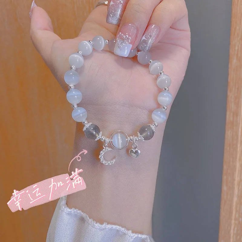 Harajuku Moonstone Beaded Bracelet for Women Elegant Opal Stone Bell Charm Bracelets INS Fashion Aesthetic Egirl Jewelry