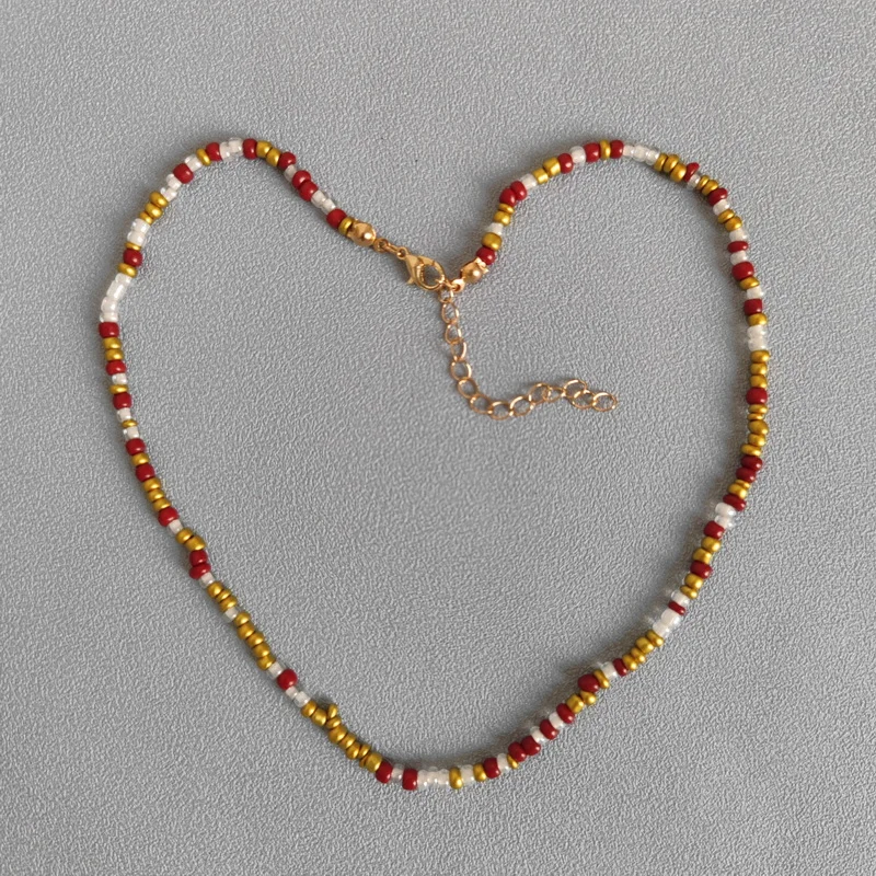 Fashion Colorful Rice Beads Necklace for Woman String Beaded Short Chic Clavicle Chain Necklace Girls Summer Jewelry Wholesale