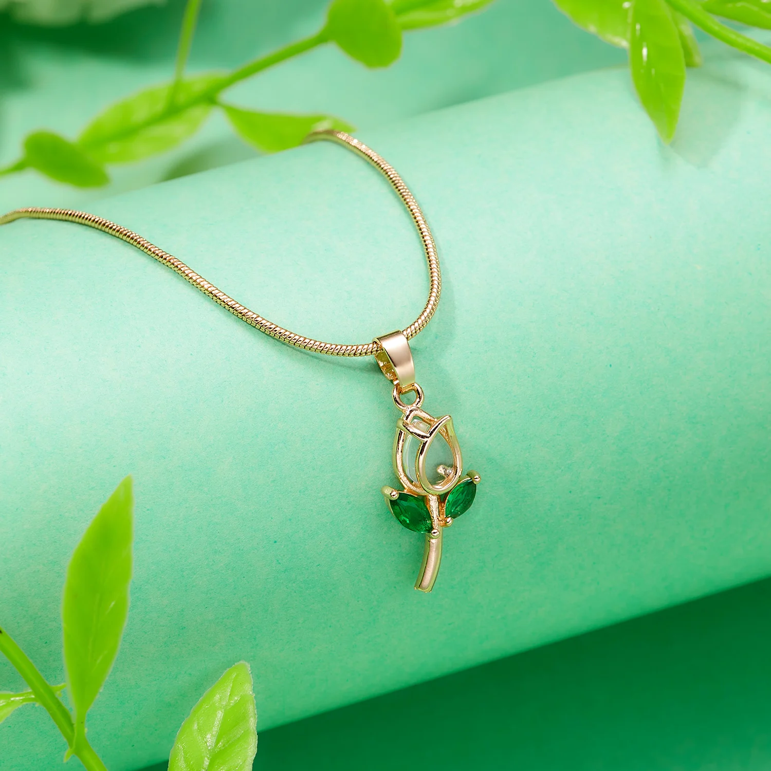 Light Luxury Rhinestone Tulip Flower Pendent Necklace For Women Elegant Rose Floral Clavicle Chain Choker Aesthetic Jewelry Gift