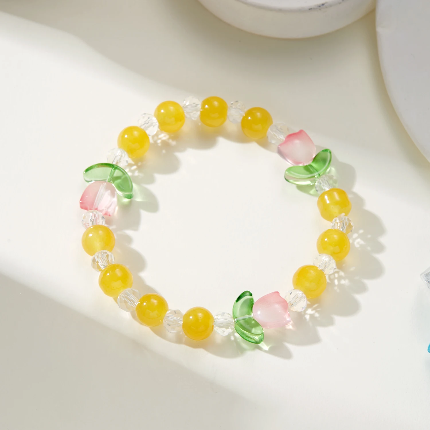 New Fashion Tulip Flower Bracelet for Women Elegant Sweet Candy Color Beads Bracelet Girls Party Jewelry Friendship Gift