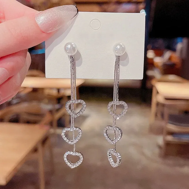 Fashion Geometric Pendant Earrings Rhombus Zirconia For Women Heart Butterfly Long Tassel Drop Earrings Jewelry Accessories Gift