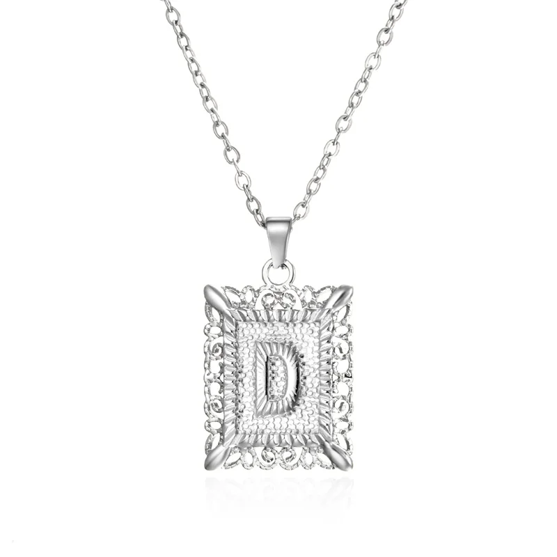 Fashionable Initial Letter Necklace for Women Silver Color Stainless Steel Square Pendant A-Z Alphabet Necklace Gifts for Him