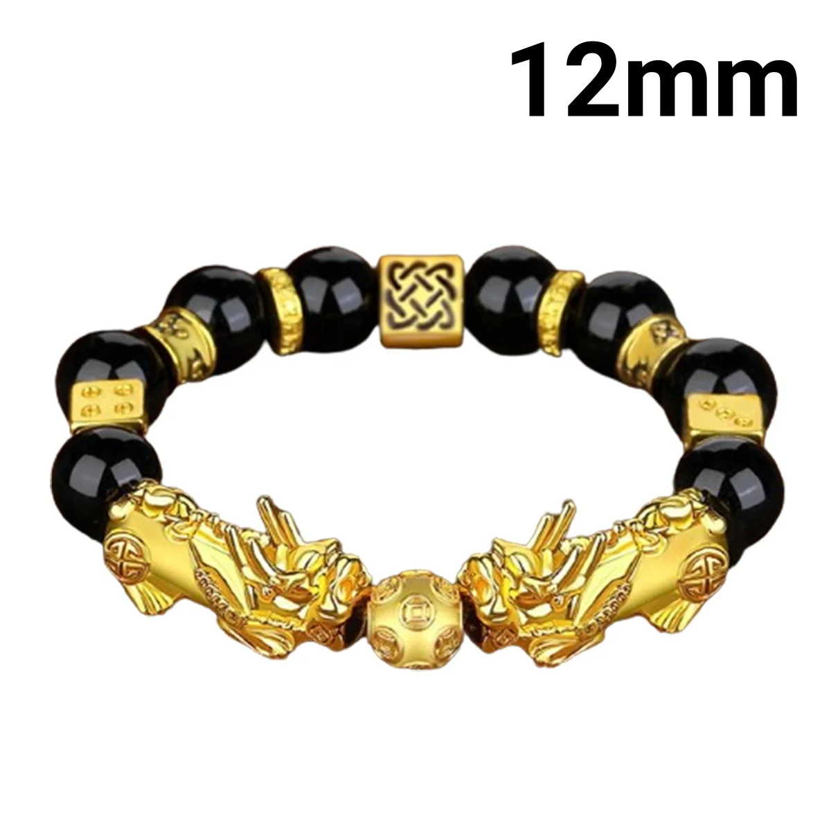 Buddhism Feng Shui Obsidian Stone Beads Bracelet Men Women Unisex Brave Troops Wristband Gold Color Pixiu Wealth Lucky Bracelets
