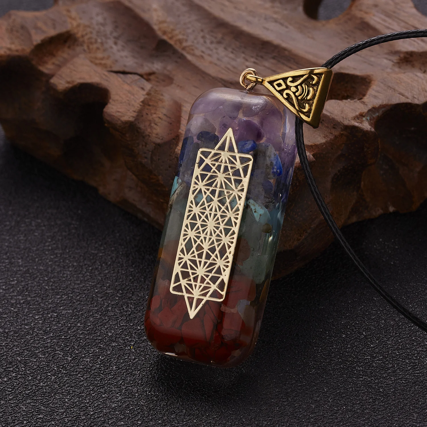 Geometric Pattern Chakras Orgonite Natural Stone Pendant Rope Chain Healing Energy Necklace For Women Men Meditation Jewelry