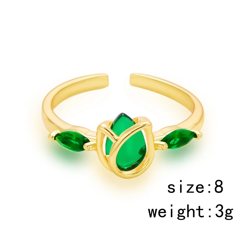 2024 New White Red Green Crystal Tulip Flower Rings For Women Gold Color Adjustable Flower Ring Wedding Aesthetic Jewelry Gift
