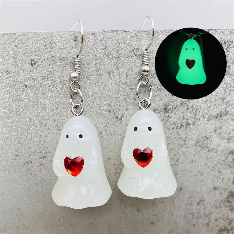 Cute Cartoon Luminous Ghost Dangle Earrings For Women Funny Pumpkin Heart Glow In The Dark Earring Halloween Festival Jewelry