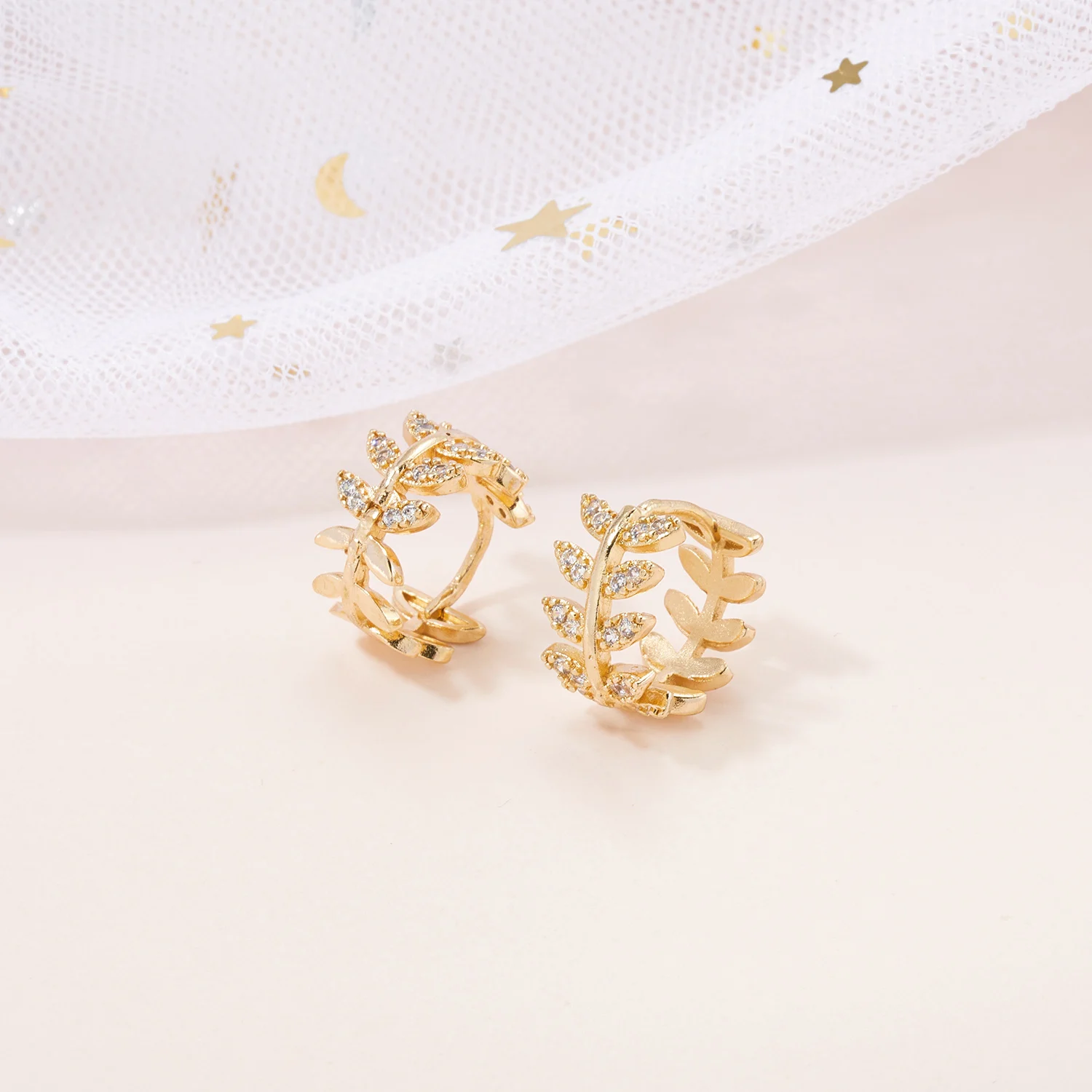 Hot Sale Gold Color Leaves Circle Women Earrings Exquisite AAA Zircon Stud Earrings Fashion Wedding Party Jewelry Gift Dropship