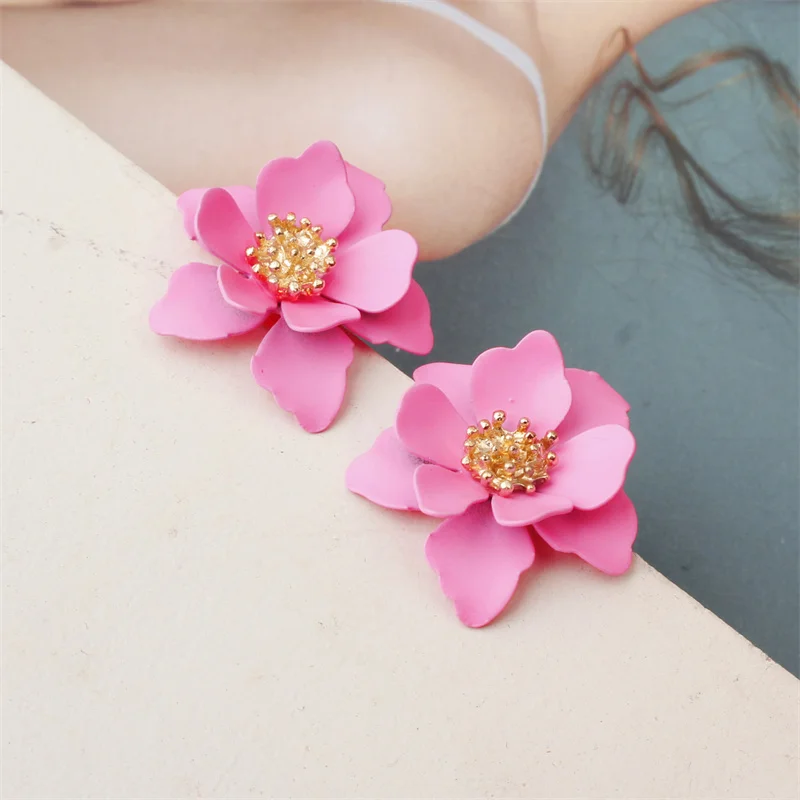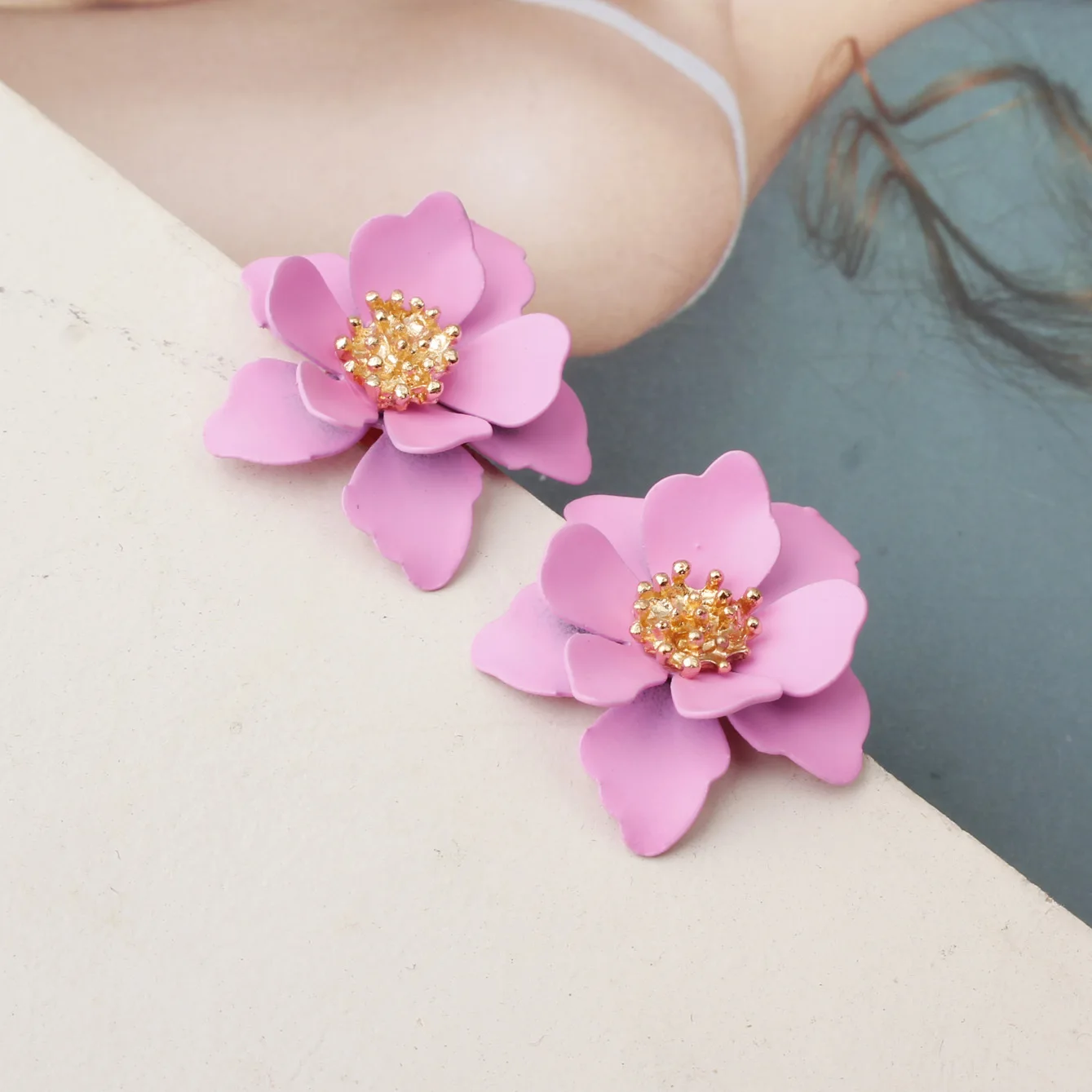 Korean Big Matte Flower Stud Earrings Summer Beach Party Resin Statement Earring Women Boho Fashion Ear Studs Jewelry Girl Gifts