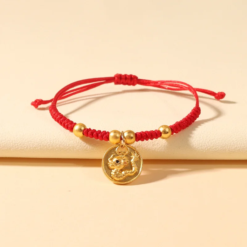 2024 Dragon Year DIY Art Crafts Bracelet Gift Red Rope Braid Lucky Zodiac Dragon Beaded Bracelet for Woman Lovers Friend Jewelry