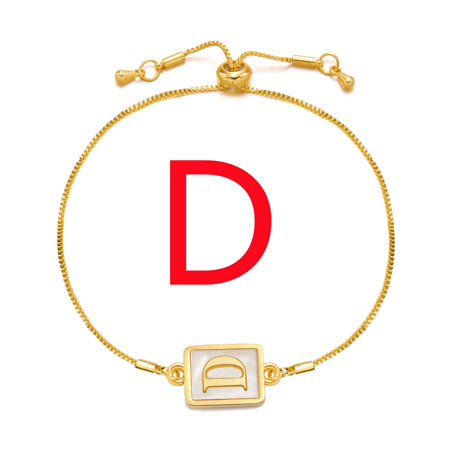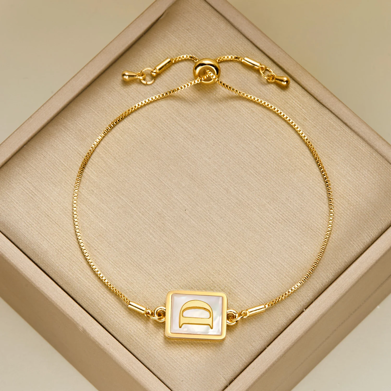 26 English Initial Letter Luminous Imitation Shell Bracelet For Women A-Z Alphabet Square Glow In Dark Bracelet Birthday Jewelry